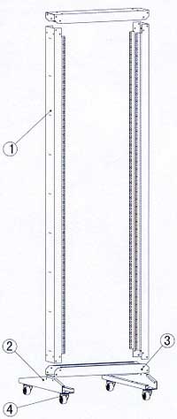 | 1. Pole 2. Plinth 3. Front and bottom beams 4. Castor |